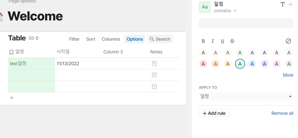 이번에는 일정과 시작일 컬럼에 색을 입혀보겠습니다!